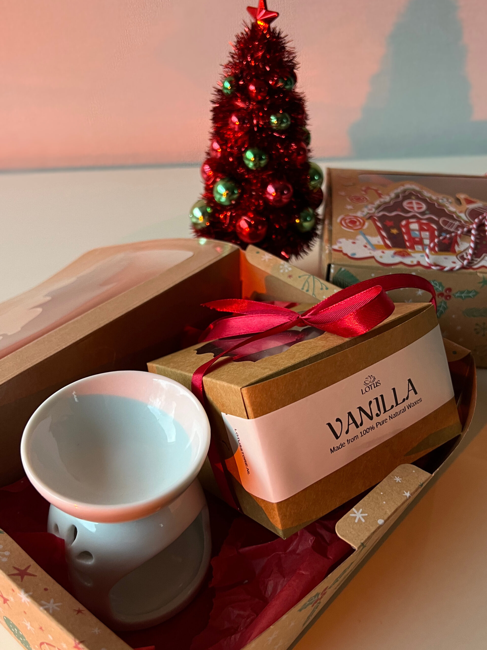 Celebrate the holiday season with this charming set featuring Christmas Melts Set. Available in a variety of delightful fragrances to suit every preference, it comes with an elegant ceramic burner to create a warm and cozy Christmas ambiance. Beautifully packaged, it’s the perfect gift or a festive addition to your home décor this season.