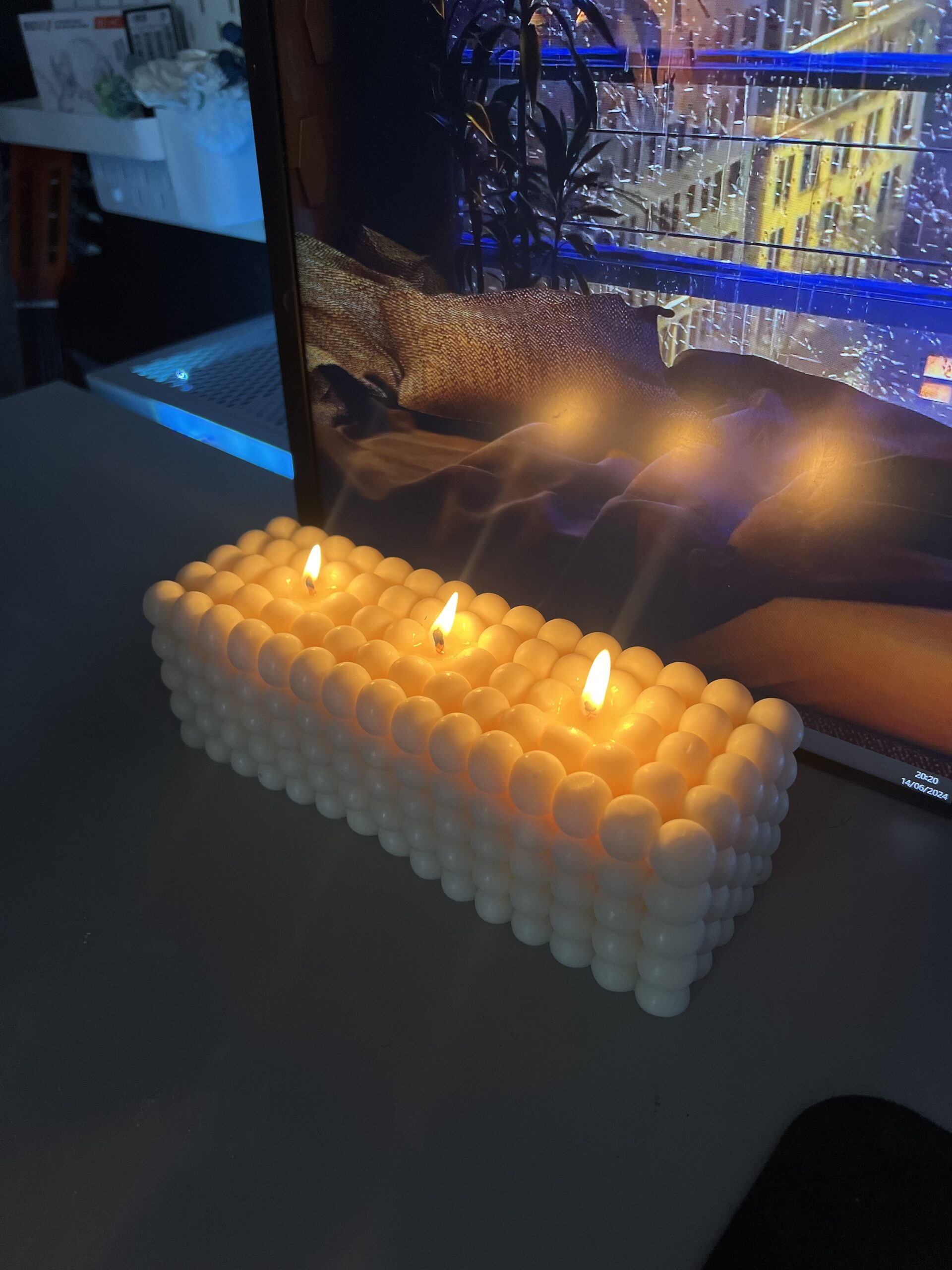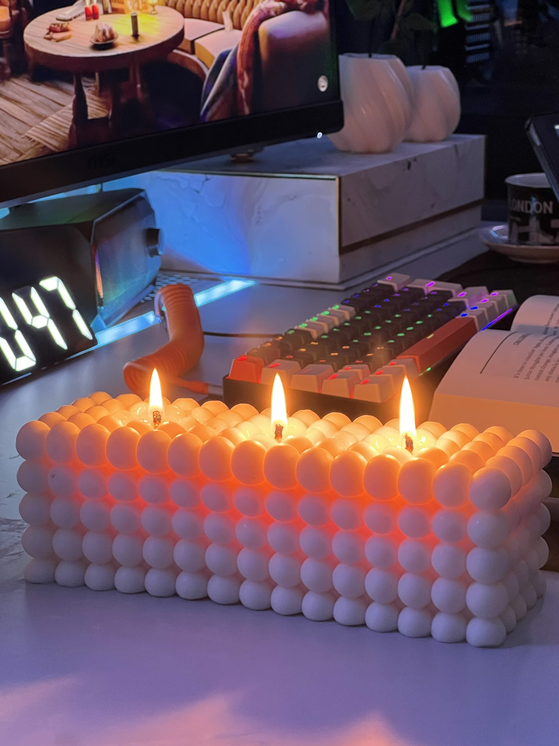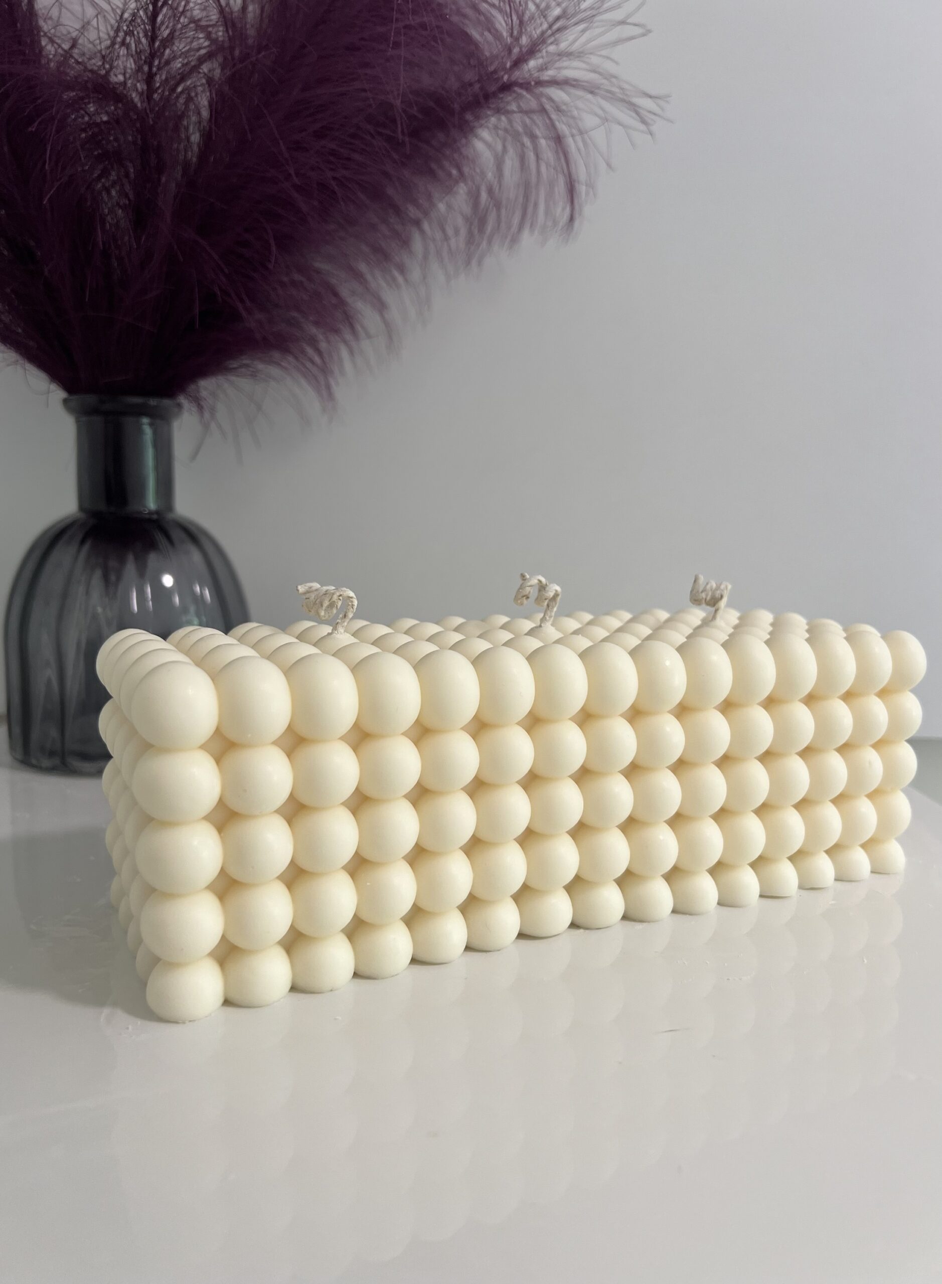 Experience the captivating presence of our Huge Bubble Candle, a masterpiece crafted from 100% pure, natural wax. This generously sized candle boasts a striking design of numerous spherical protrusions, creating a mesmerizing textured surface that adds a touch of modern elegance to any space. The absence of fragrance allows you to fully appreciate the candle’s natural beauty and the calming, warm glow it emits. Pure natural wax offers a clean and even burn, providing hours of tranquil ambiance without any artificial scents. Indulge in the simple elegance and natural purity of our Huge Bubble Candle.