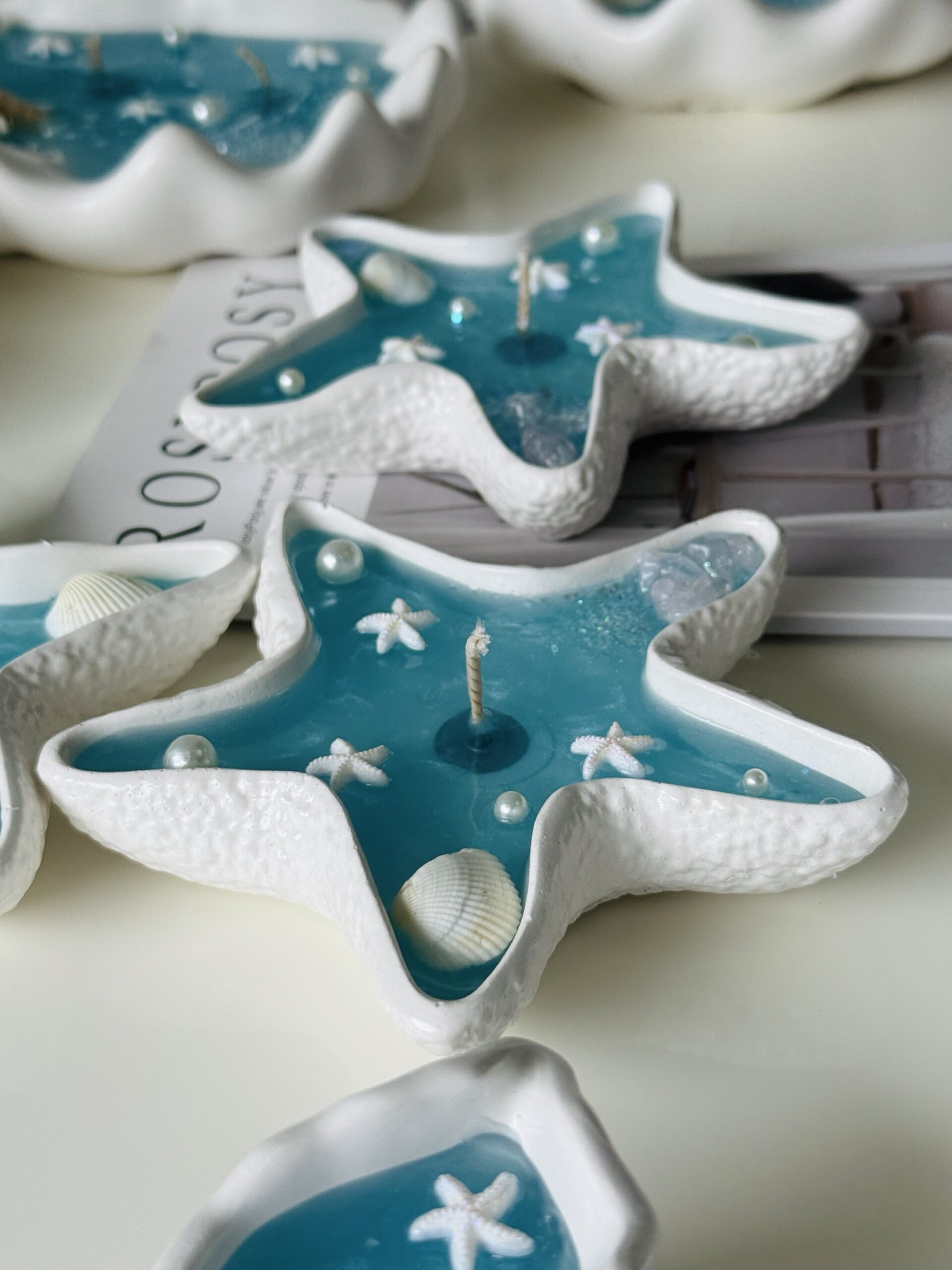This unique candle is 100% handmade – from the shell-shaped concrete base to the crystal-clear gel wax poured inside with care.