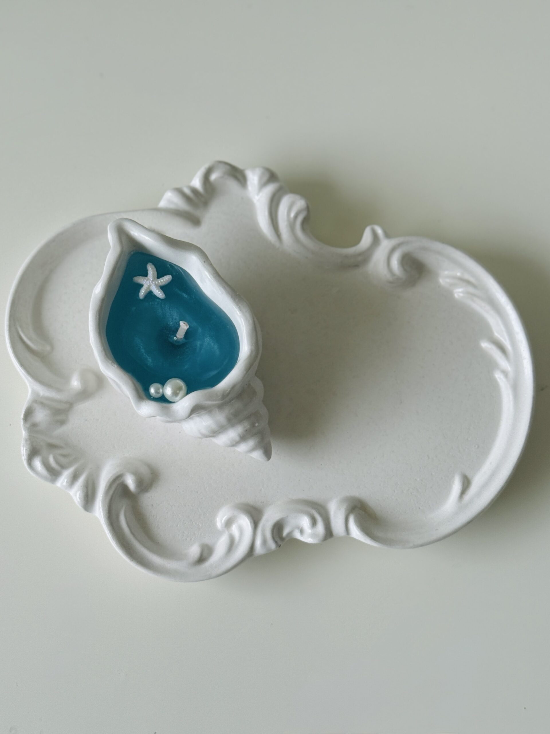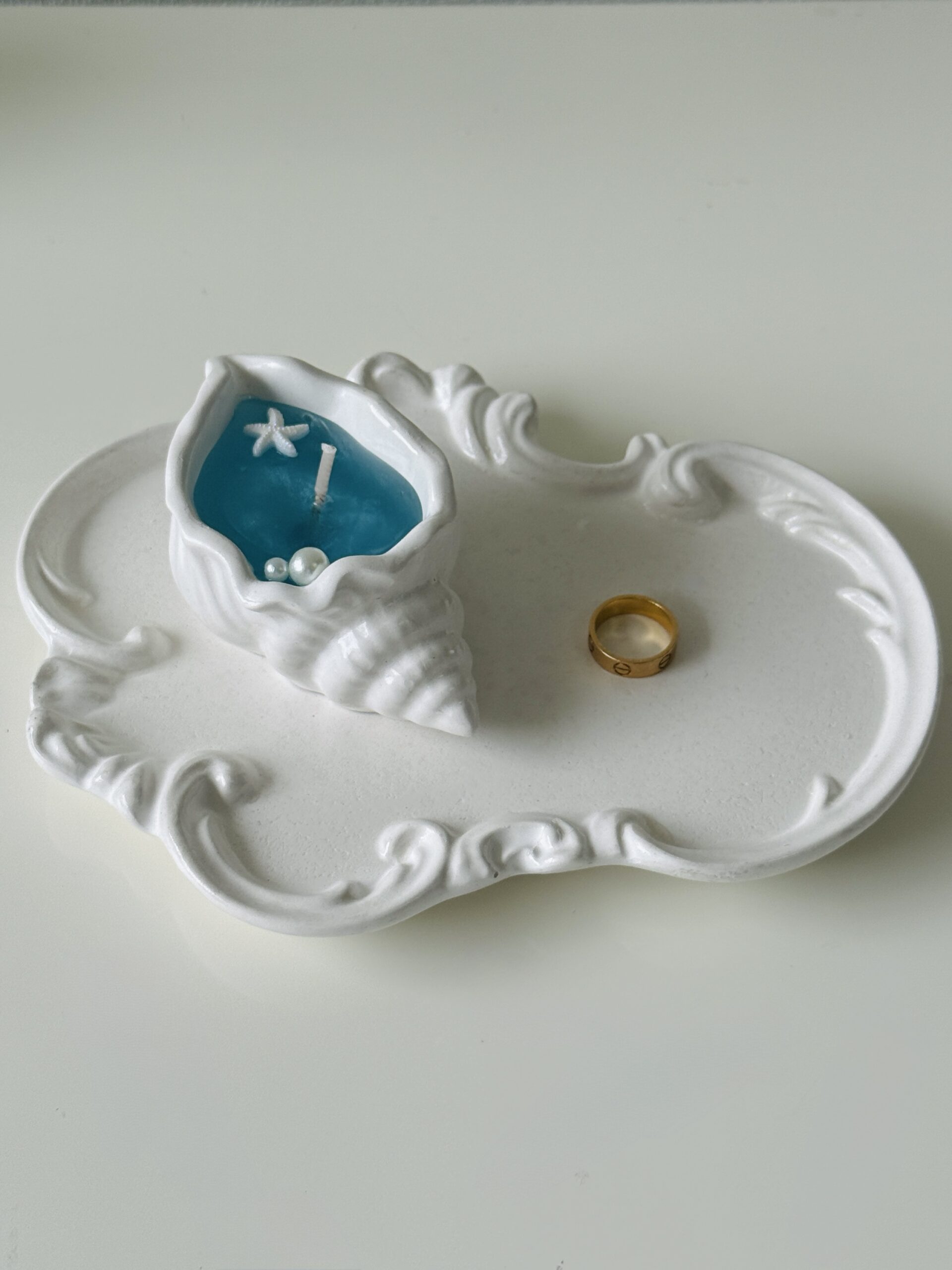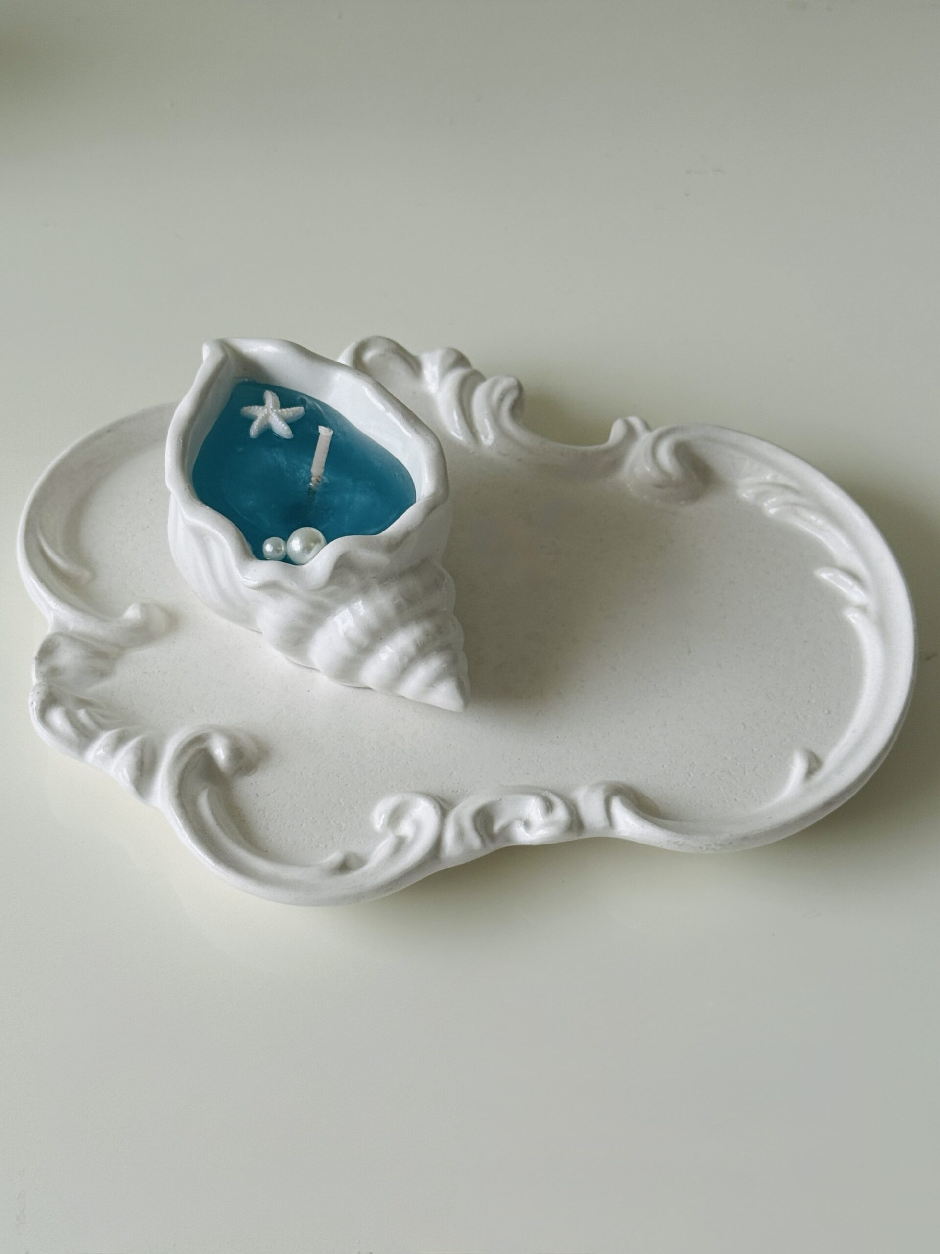 ElegaLuxurious set featuring a mini seashell candle paired with an elegant baroque-style tray.